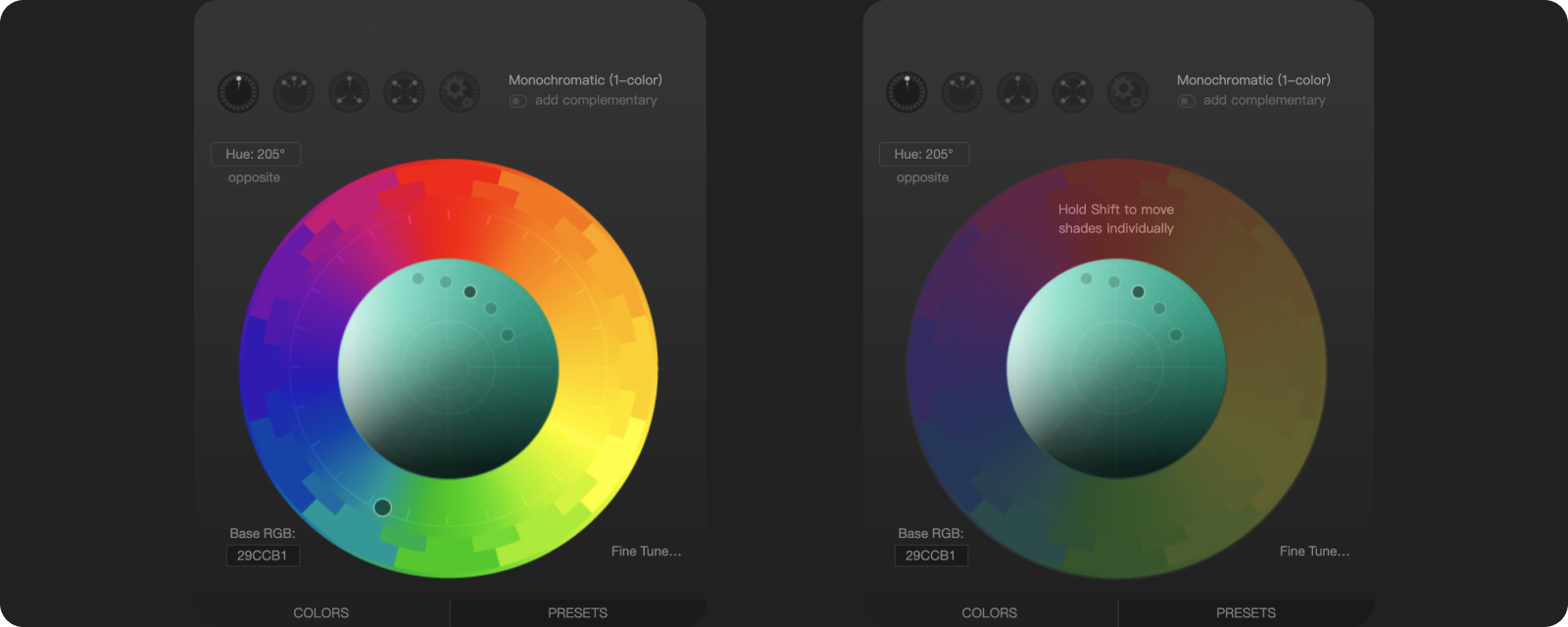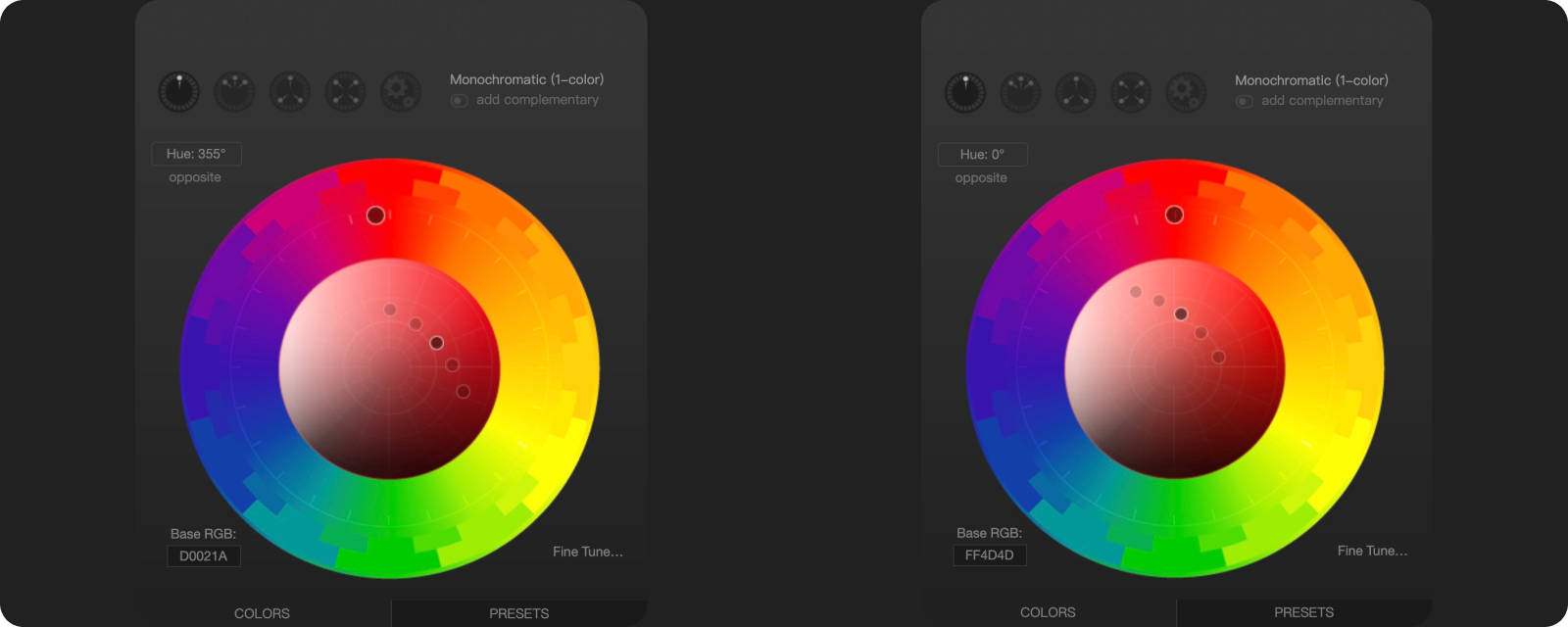 Arco Design 红色皮肤在色相环的位置