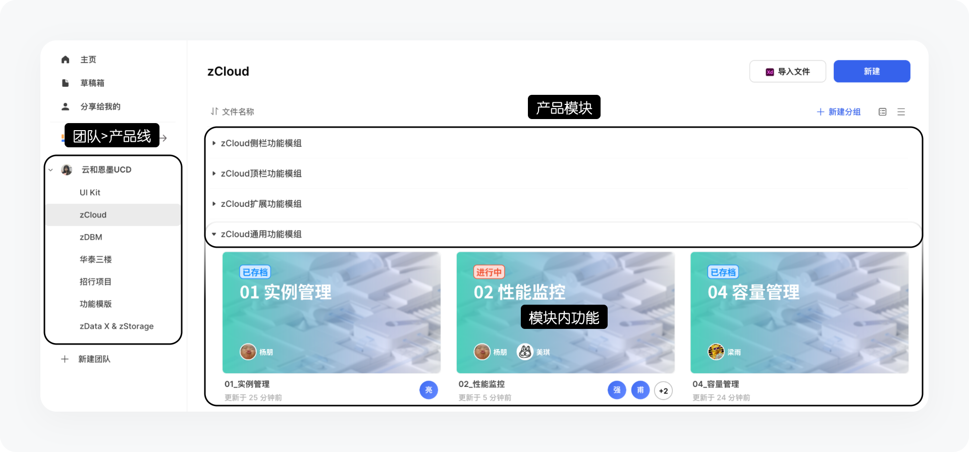 此种团队以及项目管理方式选择按照组织结构创建团队,每个团队即是一个大部门,避免不同团队、产品线文件混淆;