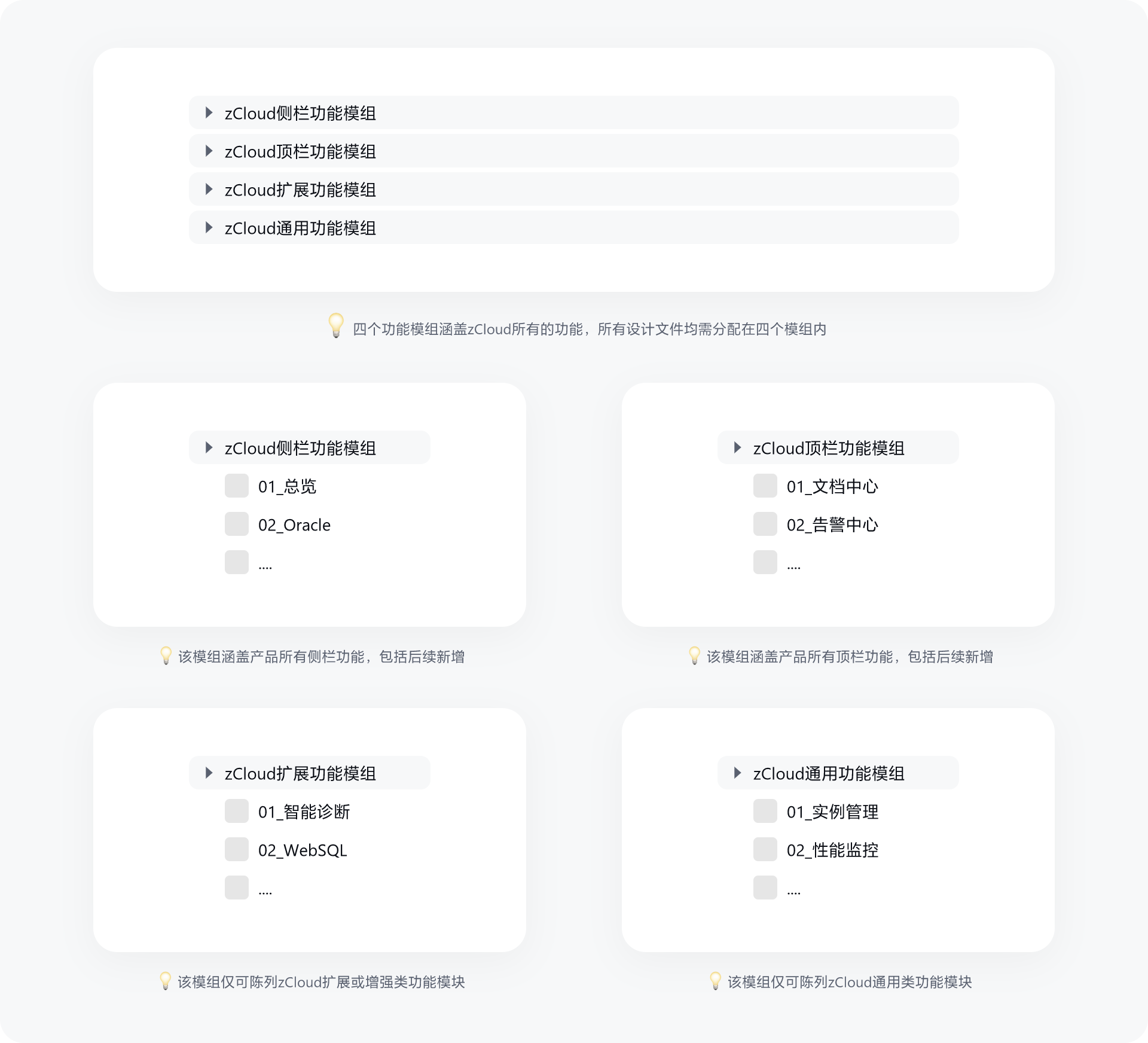 1、按组织结构->产品线->产品模块>模块内功能